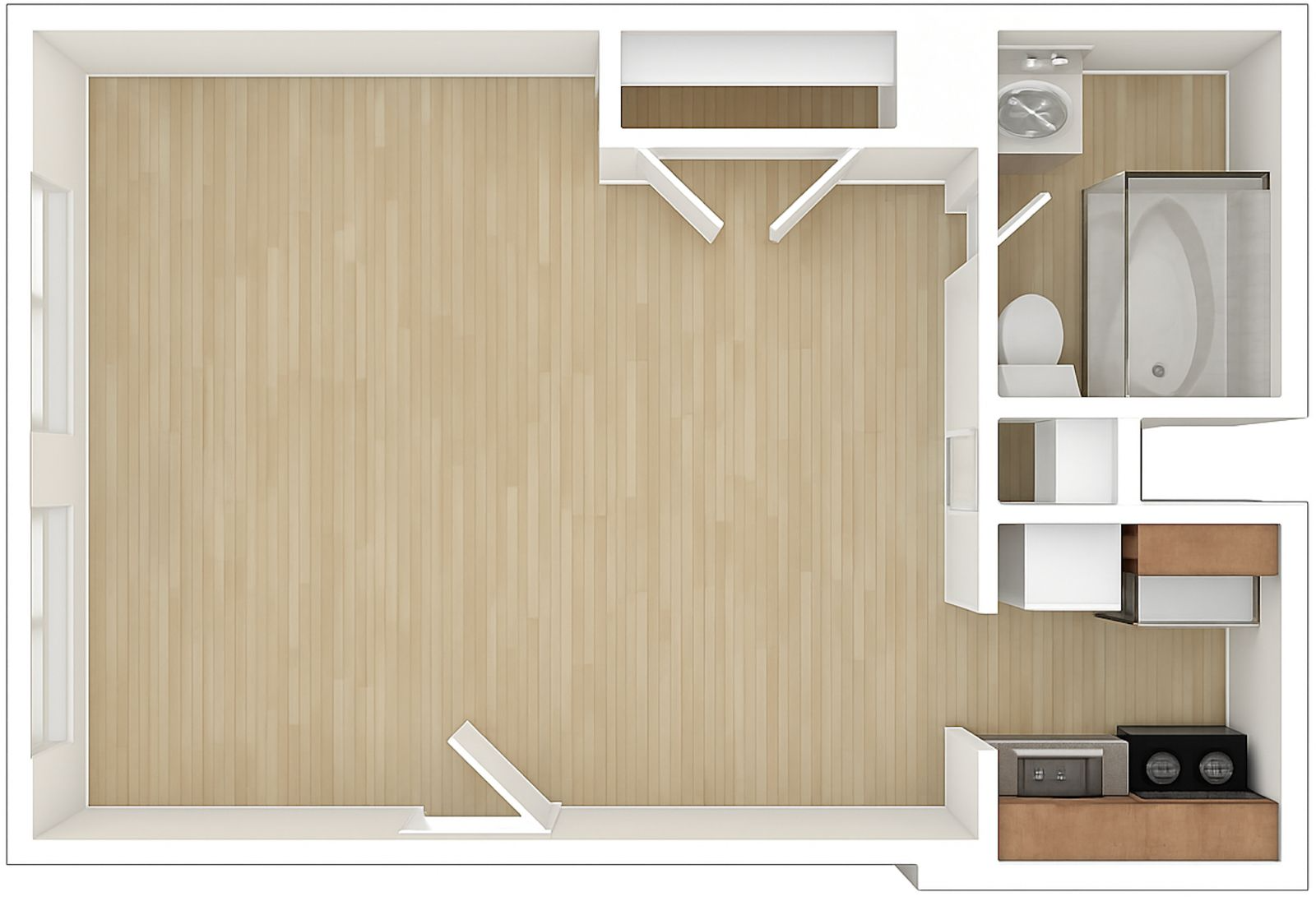 Modern downtown studio in the heart of Lafayette, just steps from shops, restaurants, and major bus routes with direct access to Purdue. This 432 sq. ft. unit features a bright open layout, secure building access, on-site laundry, a full bathroom, and efficient wall-mounted heating and cooling. Located in a safe, walkable area and only 10 minutes from Purdue, it offers exceptional convenience for students and professionals.